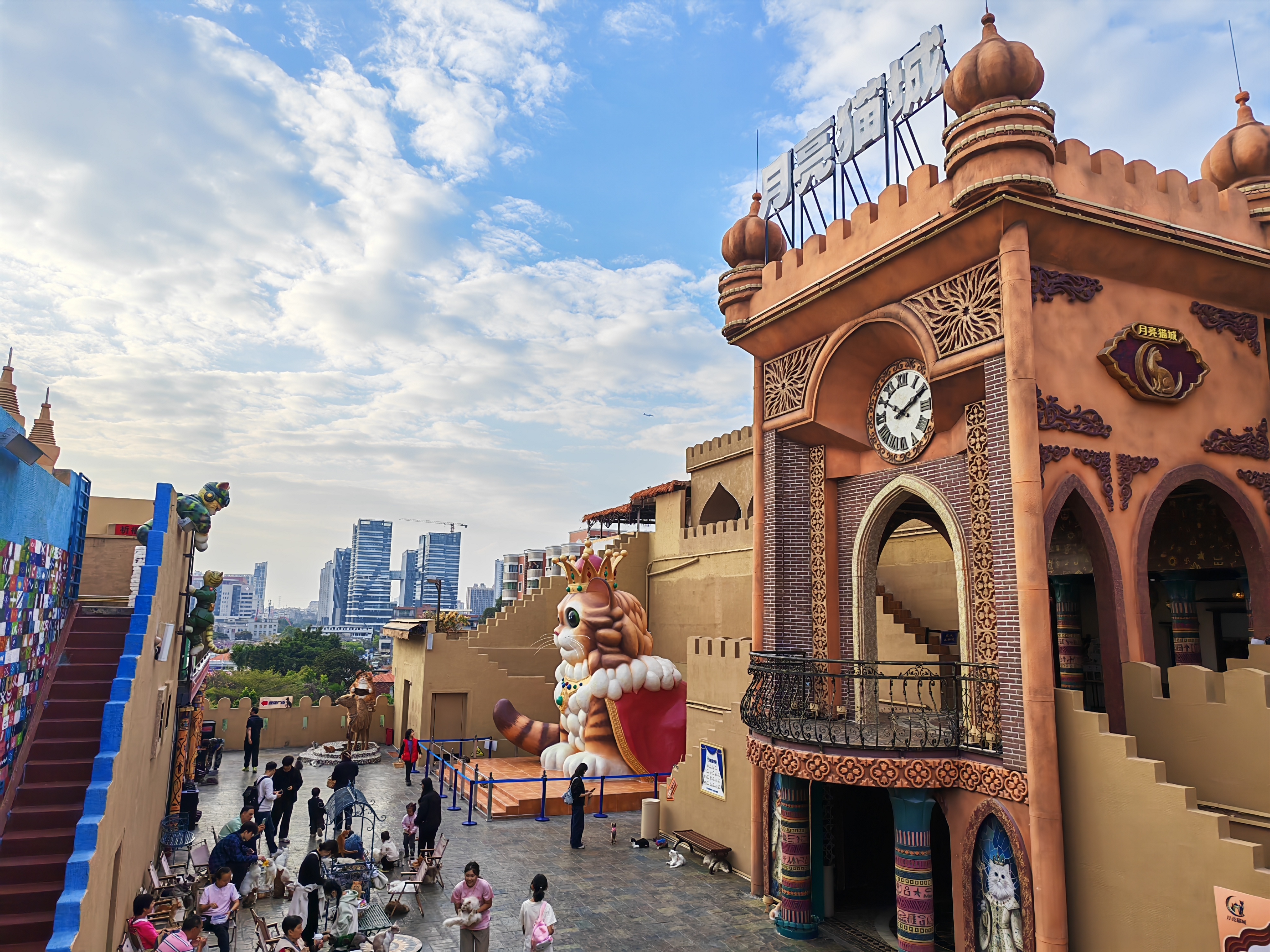 作为近期备受关注的新晋地标,月亮猫城以其“华南小喀什”的西域风情场景与规模化萌宠互动,为都市休闲提供了全新的情感出口。上万平方米的空间内,规划了猫王广场、月光大道等主题打卡区域,构建了日游夜赏的双重体验模式,为游客提供规模化、沉浸式的萌宠互动体验。