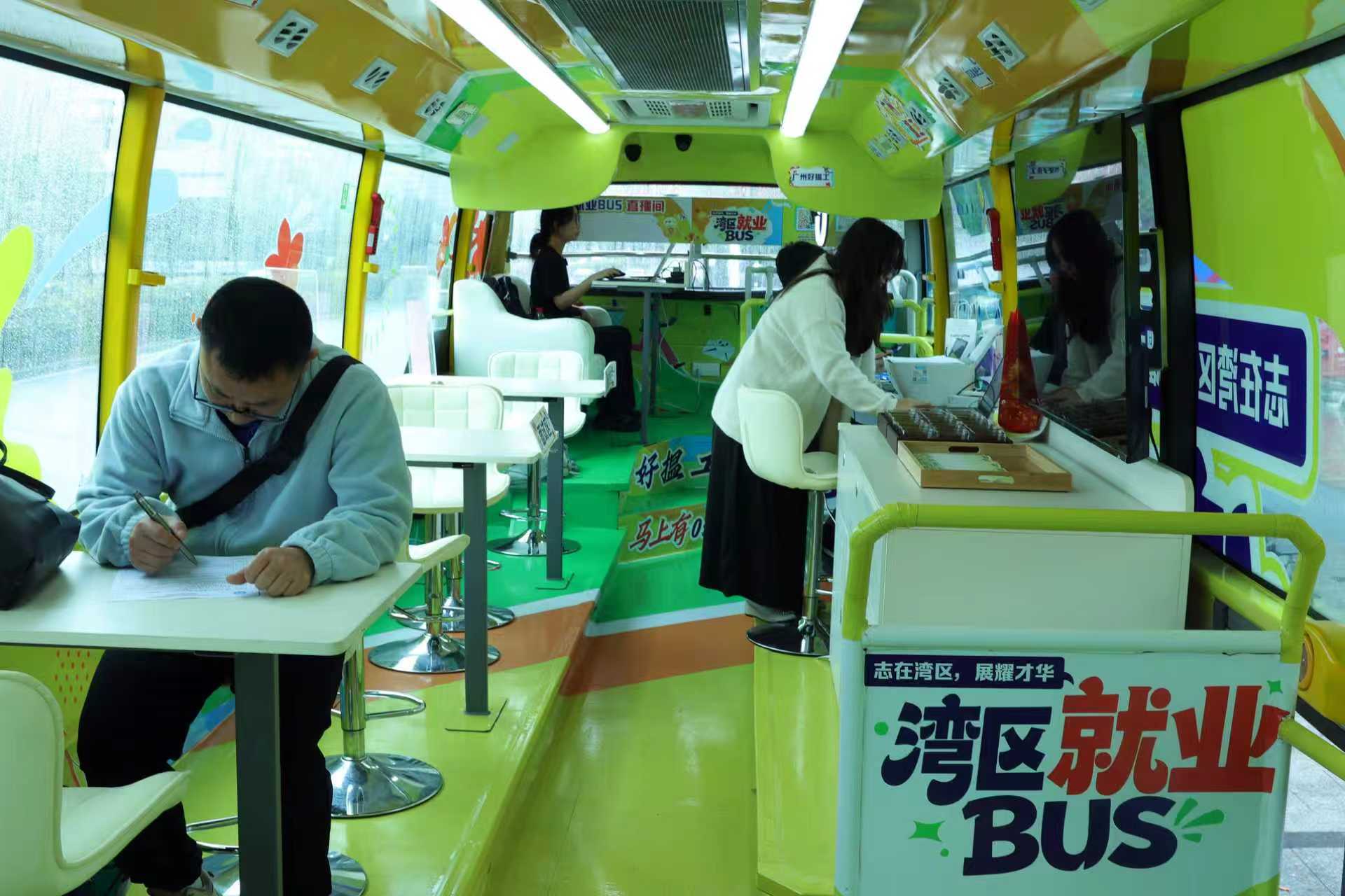 此外,今年全新升级的“湾区就业巴士”进驻现场,同步开放职业指导、求职面试、直播带岗三大功能区,为求职者提供简历优化、现场面试、云端荐岗等一站式服务。新颖的形式、贴心的服务,不仅吸引了大批求职者上车体验,也让不少年轻人驻足拍照,成为招聘会现场一道独特又亮眼的风景线。